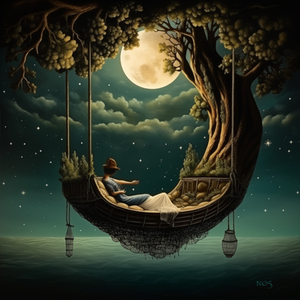 2024Surrealistisch, beperkte oplage, vrouw in hangmat